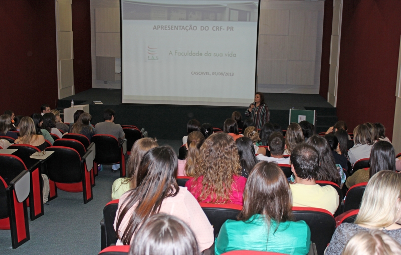 Ontem (05), os alunos de Farmácia participaram de uma Aula Magna, organizada pela coordenação curso. A palestra aconteceu no auditório do Bloco 01 e foi ministrada pelas farmacêuticas do CRF - Conselho Regional de Farmácia, Miriam Fiorentin e Maria do Carmo Wagner. De acordo com a coordenadora do curso, professora Patrícia Lucca, o evento teve como objetivo aproximar os alunos do trabalho desenvolvido pelo CRF. "A atividade foi organizada para recepcionar os acadêmicos, além de levar informações importantes sobre a atuação do Conselho, como órgão regulamentador e fiscalizador da profissão", destaca. As farmacêuticas contaram um pouco da história do CRF no Brasil e no Paraná, e destacaram todas as ações da instituição em busca da melhoria da profissão no país. "A ação foi importante para que os futuros farmacêuticos estreitarem relação com quem os representará futuramente", finaliza Patrícia.