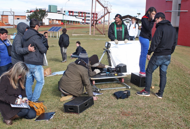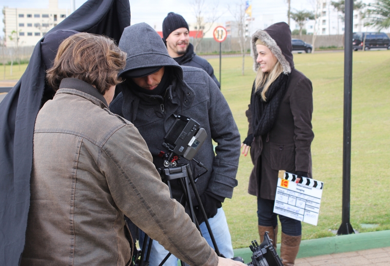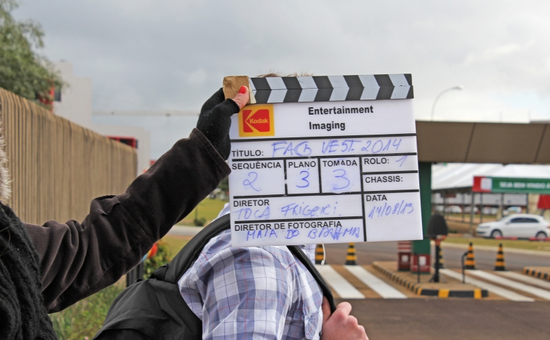 A produção do comercial televisivo do Vestibular 2014 da FAG, Fasul e Dom Bosco, já começou. O trabalho da Casa na Árvore, produtora de Santa Catarina, começou às 6h30 e só encerrou depois que a última cena foi gravada, já eram mais de 19h. De acordo com o diretor de cena, Douglas Frigeri, o diferencial da campanha deste ano será a transformação da faculdade usando computação gráfica. "O tema ainda é segredo, mas podemos adiantar que o objetivo é promover um link da FAG como portal para o mundo", conta. Para a diretora de produção da Casa na Árvore, Gisele Cancian, um dos desafios das gravações foi à condição climática. "Estava muito frio e o figurino do comercial é de verão, mas, como a nossa equipe de produção é reduzida o processo se tornou mais ágil", destaca. Gisele contou que todos os participantes do comercial são acadêmicos da FAG. "A liberdade criativa se torna mais efetiva quando os alunos da instituição são inseridos no contexto da campanha", comenta. O diretor de criação da House FAG, Mark Reginatto, adiantou que será uma evolução do conceito do último vestibular. "Esse ano a temática necessita o uso de computação gráfica avançada, pois acadêmicos, nossos atores, vão interagir com elementos virtuais durante as cenas", destaca Reginatto. Lucas Ruzza, acadêmico do 6° período de Jornalismo, participou pela primeira vez de uma gravação. "Foi meu primeiro contato com produção e achei interessante acompanhar os bastidores e conhecer a forma que a Casa na Árvore trabalha", destaca.
