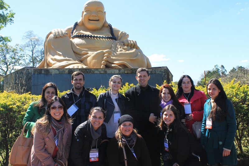 Os acadêmicos de Direito, acompanhados pela coordenadora do curso Viviana Bianconi e do professor Anderson Dias, participaram de uma visita de estudos científicos e culturais em Foz do Iguaçu. A viagem acontece todos os anos e envolve as disciplinas de Filosofia do Direito e a Sociologia do Direito. O grupo foi recebido na Mesquita Omar Iben Khattab, pelo sheik que ministrou a palestra "Pilares do Islamismo", prestando esclarecimentos acerca da crise no Egito. O grupo passou ainda pelo Templo Budista para ter contado com outro modelo de pensamento, o budismo chinês. Na ocasião, Shanti esclareceu ao grupo os principais conceitos envolvendo a filosofia de vida budista. A atividade tem como foco trabalhar questões transdisciplinares, tais como: diversidade, consciência étnico-racial, ética e humanização, desenvolvimento das habilidades sociais e conivência em meio a diversidade ideológica. Para Viviana a ação proporciona aos estudantes ampliar seus conhecimentos. "A viagem além de proporcionar o conhecimento, tem o condão de aproximar os acadêmicos das vivências de mundo fora de seu círculo social", destaca. "É uma forma evoluir as discussões e compreensões de conteúdos relacionados a formação humana e teórica dos futuros bacharéis em Direito", acrescenta o professor Anderson.