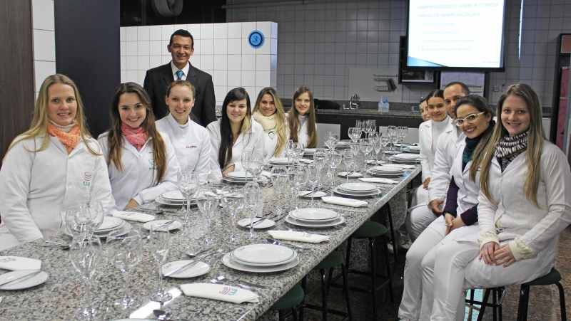 Os acadêmicos do 6º período de Nutrição realizaram uma aula prática sobre harmonização de alimentos e bebidas. A ação foi ministrada pelo enogastrônomo, Ney Machado, e tinha como objetivo mostrar as distintas formas de harmonização nos pratos. A atividade fez parte da disciplina de Nutrição em Gastronomia, ministrada pela professora Sabrine Zambiazi da Silva. De acordo com a coordenadora do curso, professora Nanci Rouse Teruel Berto, os nutricionistas buscam informações sobre gastronomia e os profissionais dessa área procuram os nutricionistas para um trabalho de parceria. "A gastronomia está ligada ao prazer de se alimentar, enquanto que nutrição tem a preocupação em alimentar direito a população. Embora pareçam coisas impossíveis de unir, a preocupação generalizada com uma vida mais saudável tem unido os dois temas", destaca a professora.