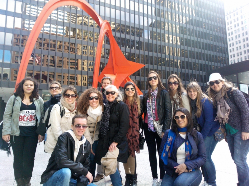 O grupo que faz parte da Missão FAG - Estados Unidos está em Chicago. Alunos e professores dos cursos de Arquitetura e Urbanismo e Design de Interiores, passaram pela casa e estúdio do renomado arquiteto Frank Lloyd Wright, em Oak Park. Conheceram o Jay Pritzker Pavillion, no Millennium Park; Farnsworth House, projeto icônico de Mies Van Der Rohe; Mccornick Hall no IIT, projeto de OMA, com um guia local voluntário, estudante de arquitetura liberiano; a fonte projetada pelo neto de Mies Van Der Rohe na margem do rio Chicago; e a escultura de Alexander Colder no Federal Plaza, projetado por Mies Van Der Rohe. O grupo embarca hoje para Nova York e na sequência Filadélfia. A atividade faz parte do Núcleo de Relações Internacionais.