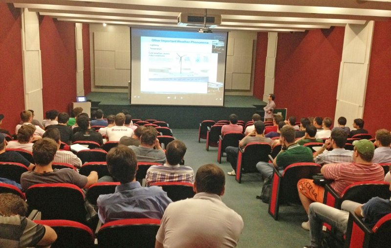 A professora Merlinde Kay da Universidade de Nova Gales do Sul (UNSW) ministrou uma palestra, via vídeo conferência, para os acadêmicos dos cursos de Engenharia Mecânica e Engenharia Elétrica, tendo como foco principal "Energias Renováveis". O primeiro contato com Merlinde, que é PhD em predição de ventos e viabilidade técnica de instalação de fazendas eólicas, aconteceu por meio do acadêmico de Engenharia Mecânica, Amauri Ghellere Garcia Miranda, que passou um ano na Austrália em intercâmbio, por meio do programa Ciências Sem Fronteiras. Para a coordenação de ambos os cursos a palestra agregou valor, principalmente no que diz respeito à complexidade da pesquisa realizada. "Dentre as fontes de energias renováveis, destaca-se a energia mecânica produzida pelos ventos, que vem contribuir significativamente para o atendimento das necessidades da região oeste do estado do Paraná, no que diz respeito à produção de eletricidade", destaca o professor Roberson Parizotto.