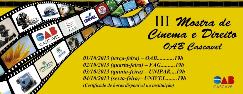 Curso de Direito participa da 3ª Mostra de Cinema da OAB de Cascavel