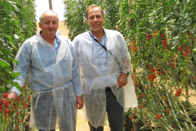 Os professores do curso de Agronomia, Cornélio Primieri e Jorge Alberto Gheller, estiveram em Araguari, Minas Gerais, para conhecer um dos maiores produtores de tomate do Brasil. Na oportunidade, foram recebidos por Edson Trebeschi, proprietário da fazenda, e conheceram algumas técnicas de cultivo do tomate uva, em estufa. "As novidades serão repassadas aos alunos, nosso objetivo é reforçar com os futuros profissionais que o cultivo de hortaliças também é uma opção, que faz parte do agronegócio", enfatiza Cornélio. Na Fazenda Escola as obras de construção de uma estufa, destinada ao plantio de hortaliças, já está em fase de conclusão. "Com a nova estrutura os alunos terão a oportunidade de colocar em prática os conteúdos vistos em sala de aula. Nosso foco principal será a produção de tomate, mas vamos investir também em outras hortaliças, que precisam desses cuidados", conta o professor.