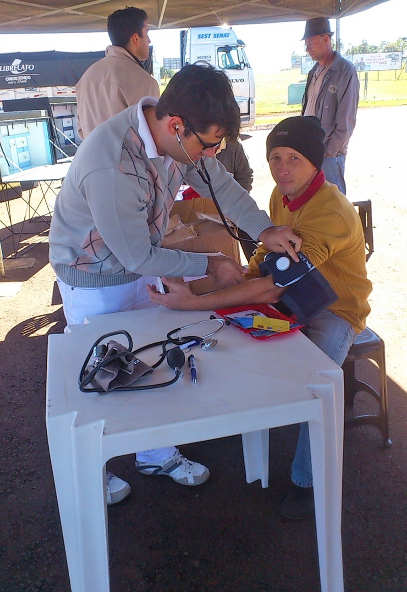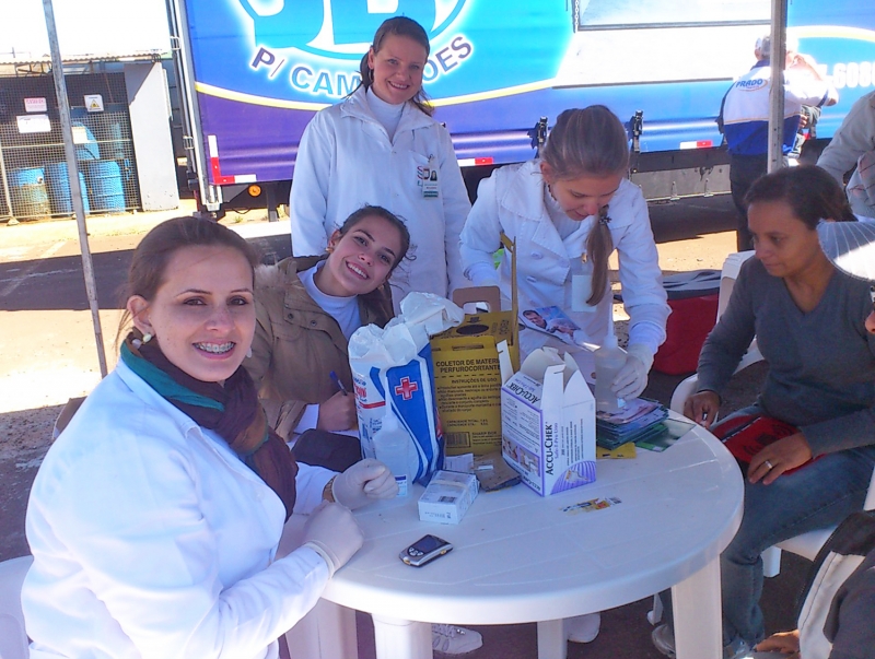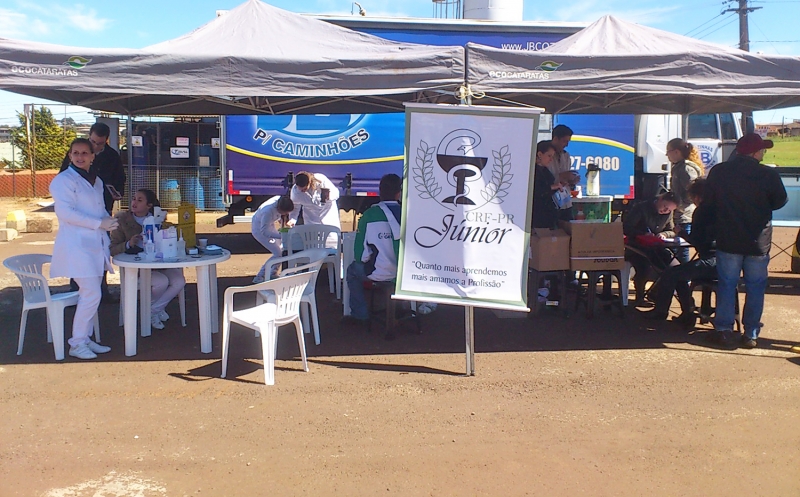 O curso de Farmácia e o CRF Júnior, em parceria com o Conselho Regional de Farmácia, realizaram duas atividades em alusão ao dia internacional do farmacêutico, comemorado em setembro. A primeira aconteceu no Posto Sábia e teve como objetivo aferir a pressão arterial e verificar a glicemia, além de prestar informações a respeito da hipertensão e diabetes aos caminhoneiro que trafegam pela BR 277. Os acadêmicos de farmácia atenderam mais de 150 pessoas. "Estes profissionais costumam trabalhar muito, alimentam-se mal e não praticam atividades físicas. São fatores de risco que aumentam as chances de hipertensão e diabetes. Assim, nossas orientações tiveram como objetivo conscientizar os caminhoneiros dos cuidados com a saúde", enfatiza a acadêmica do 7º período, Cláudia Mara Dessanti. A segunda atividade aconteceu no Auditório do Bloco 01 da FAG. Na oportunidade, os acadêmicos participaram da palestra "Competências Interpessoais na Gestão Farmacêutica", ministrada por Adeilsson Antônio Alcântara, especialista em treinamentos comportamentais e técnicos da indústria farmacêutica.