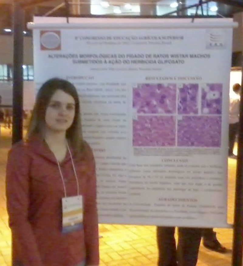 A acadêmica do 6° período de Ciências Biológicas, Alana Lucia Villa Guerra, teve trabalho aprovado no 8º Congresso Brasileiro de Educação Agrícola Superior e na 53ª Reunião Anual da Associação Brasileira de Educação Agrícola Superior. A pesquisa foi orientada pela professora Jéssica Vencatto Senem e tinha como tema as "Alterações morfológicas do fígado de ratos Wistar machos submetidos à ação do herbicida Glifosato". O trabalho foi desenvolvido na Faculdade Assis Gurgacz (FAG) e Universidade Estadual do Oeste do Paraná (UNIOESTE), Campus de Cascavel.