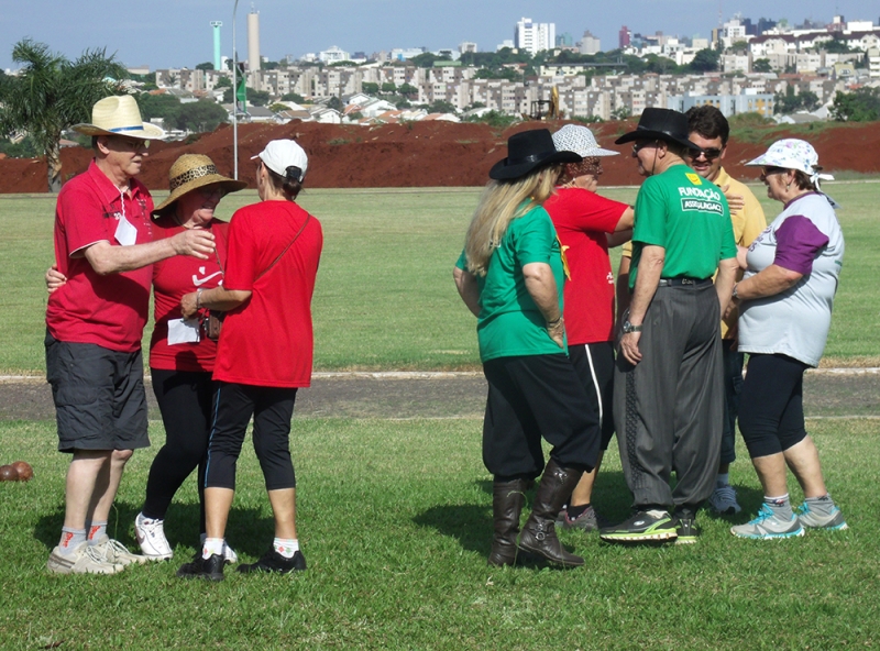 A Fundação Assis Gurgacz promoveu mais um torneio de Bocha Campeira de Quilômetro, para os idosos de Cascavel. A atividade foi realizada em comemoração aos 10 anos do Estatuto do Idoso. Participaram da ação todas as entidades que atendem a terceira idade no município. De acordo com a coordenadora do projeto Ação Integrada pela Cidadania, Salete Gerardi de Lima Chrun, o objetivo da competição foi desenvolver um momento de socialização e interação, por meio da modalidade esportiva. "O torneio propiciou um momento recreativo e diferenciado, destaco a bocha campeira como um elo de socialização entre os participantes e com grande aceitação pelo público presente", enfatiza. O educador físico do projeto, Lucas Prates Chiarello, destaca os benefícios da modalidade para os idosos. "A bocha campeira como prática esportiva promove o aumento do bem estar físico e psicológico, melhora o estado de saúde, se torna uma prática prazerosa, reduzindo o estresse do dia-dia e auxilia na diminuição da ansiedade", conta. Os vencedores foram: 1º lugar: Claudinei Massaneiro e Nadir Terezinha Barzotto, do Centro de Convivência de Idoso da Prefeitura; 2º Lugar: Zefereindo Dagostin e Arminda Dagostin, do Bombeiros em Ação com a Melhor Idade; 3º Lugar: Elis Pedroso e Lurdes Cordeiro, do Instituto Alfredo Keffer; 4º Lugar: Decol e Celivio, do Bombeiros em Ação com a Melhor Idade; 5º Lugar: Enedina da Silva e Maria Izabel de Souza, da Fundação Assis Gurgacz.