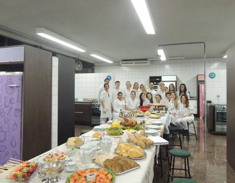 Os acadêmicos do 6º período de Nutrição realizaram uma aula prática da disciplina de Serviço de Alimentação em Hotelaria e Gastronomia. O objetivo da atividade foi planejar eventos em várias ocasiões, como em banquetes, chás, buffet e café da manhã. Durante a ação, os alunos tiveram que planejar o cardápio adequado ao evento determinado. A professora Sabrine Zambiazzi conta como foi a participação dos alunos. "O diferencial foi a motivação dos acadêmicos, o que contribui para a formação dos nutricionistas, pois está é uma área em constante crescimento no mercado", destaca.