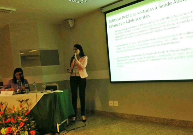 As docentes Jenane Topanotti Cunha e Aline Tomiasi, e os acadêmicos do 4º e 6º período de Fonoaudiologia participaram do 5º Congresso Sul Brasileiro de Fonoaudiologia, em Curitiba. Na oportunidade, a professora Aline e os alunos Diego Otávio Venera e Augusto Rocha Cremonese, apresentaram uma pesquisa científica. O trabalho intitulado "Achados de Medidas de Imitância Acústica em Alunos do Primeiro Ano do Ensino Fundamental Nove Anos na Cidade de Matelândia - PR", foi desenvolvido com o objetivo de verificar as alterações de orelha média em escolares com faixa etária de cinco a sete anos de idade. Após a apresentação, a professora Aline ministrou, a convite da comissão organizadora, uma palestra sobre a Saúde Auditiva Escolar. Já a docente Jenane foi uma das integrantes da Comissão Científica do evento.