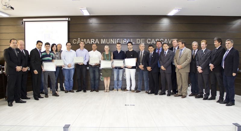 Os alunos de Arquitetura e Urbanismo receberam ontem (03), em sessão da Câmara de Vereadores, certificados em reconhecimento aos projetos para revitalização dos ambientes externos e internos da Câmara. Os certificados foram entregues pelo presidente, Marcio Pacheco, à equipe TRIER, formado pelos acadêmicos Eduardo Benincá, Geovani Cezar Feltrin e Cintia Pedrollo Gaio, que desenvolveram o melhor projeto, na categoria Ambiente Externo. O diretor geral da FAG, professor Sérgio de Angelis e a coordenadora do curso, professora Solange Smolarek Dias, também participaram do evento. A escolha aconteceu no dia 17 de outubro e contou com os votos de uma banca especializada, composta pelas arquitetas Stela Albiero Pielak, Zenaide Narciso Basso, Roberta Sarolli Saraiva Palmiro, pelo presidente da Câmara, Marcio Pacheco, pelos vereadores Fernando Winter, João Paulo, Luiz Frare, Robertinho Magalhães, Rui Capelão, Nei Haveroth e pelo procurador jurídico da Casa, Pascoal Muzeli Neto. Os critérios avaliados foram: criatividade, originalidade, qualidade estética, comunicação visual e conforto ao usuário. Pacheco parabenizou as instituições pela qualidade dos projetos apresentados. "Estes estudantes estão desenhando o presente e o futuro do país e já podem começar desenhando a casa dos seus representantes", destacou. Informações: Regina Krauss/Assessoria de Imprensa/CMC Foto: Flavio Ulsenheimer/Assessoria Câmara Cascavel