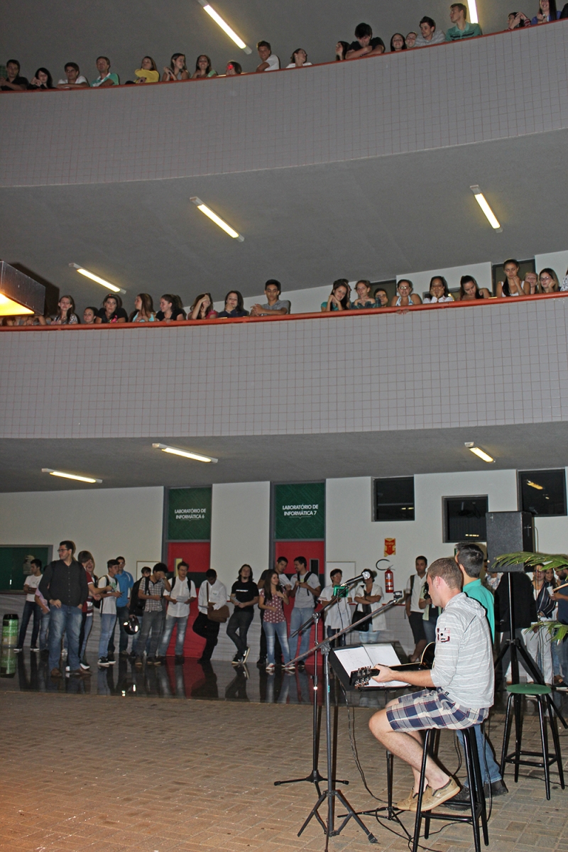 Ontem (24), na área de Convivência do Bloco 04, aconteceu mais uma edição do Intervalo Cultural, promovido pelo curso de Psicologia, com o apoio do NAAE. A apresentação ficou por conta do acadêmico de Psicologia, Fernando Silvestre, e do egresso de Jornalismo, Deyvid Alan. São apresentações de 15 minutos, dedicadas aos professores e alunos dos diversos cursos, com talentos artísticos e culturais que se apresentam para a comunidade acadêmica e proporcionam um momento de interação e lazer. O evento acontece sempre no horário do intervalo para não interferir no andamento das aulas. As próximas atrações serão apresentadas no mês de abril, com talentos dos cursos de Direito e Sistemas para Internet, após o período de provas. Os alunos e professores interessados em participar das próximas edições podem entrar em contato com a coordenação do curso de Psicologia ([email protected]) ou com o NAAE no (45) 3321-3939.