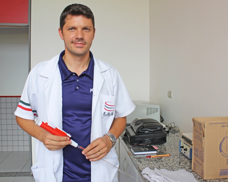 O químico e pesquisador da FAG, Ricardo Sonsin de Oliveira, em parceria com os professores, Cornélio Primieri, de Agronomia, e Suzana Bender, de Farmácia, está trabalhando em uma pesquisa inovadora. O objetivo é desenvolver um creme anti-idade, a partir de uma nova substância retirada de uma abelha nativa do Brasil. "A Faculdade desenvolve pesquisa de ponta com métodos analíticos internacionais", comentou o pesquisador. Ricardo Sonsin De Oliveira Pesquisador da FAG e professor de química no Colégio COC, Ricardo Sonsin De Oliveira, recentemente foi aprovado em 5º lugar para o doutorado de Engenharia Química da Universidade Estadual do Oeste do Paraná - Unioeste, onde desenvolverá uma nova fonte de energia a partir do lodo de esgoto.