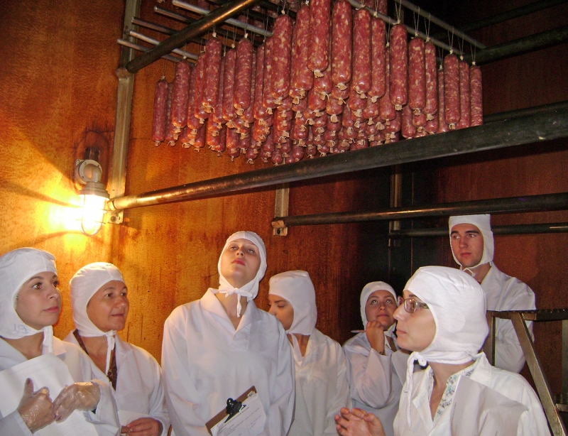 Alunos do 5º período de Nutrição estiveram na indústria de embutidos FRICEU, em Céu Azul, acompanhados da professora Daniela Miotto Bernardi. A visita técnica fez parte da disciplina de Tecnologia de Alimentos. A aula prática proporcionou ao aluno compreender de forma mais completa e aplicada como ocorre o processamento de carnes e produtos cárneos, bem como os fatores que interferem neste processo. Para a aplicação da aula a empresa disponibilizou a estrutura, um monitor e um tecnólogo de carnes que acompanhou a aula. Os acadêmicos percorreram todos os setores da empresa, participaram da desossa de uma carcaça suína, da apresentação dos cortes suínos comerciais, do processamento de defumados (salga e defumação), da visualização do cozimento de produto cárneo cozido (queijo de porco) e do processamento de uma linguiça toscana.