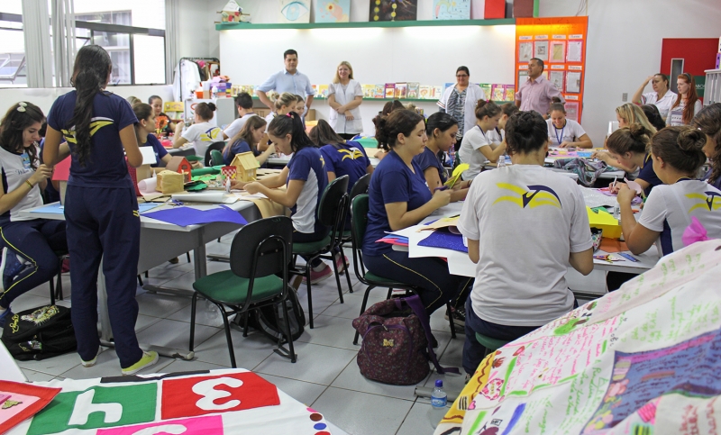 Na última semana, os alunos do curso de Formação de Docentes em nível médio do Colégio Estadual Wilson Joffre, acompanhados da professora Sonia, estiveram na FAG para uma oficina no laboratório dos cursos de Pedagogia e Letras. A atividade foi ministrada pelas professoras Silvia Cavalheiro e Silvana Krefta e os acadêmicos de Pedagogia e Letras da FAG também participaram da ação. A atividade faz parte de um projeto que é feito todo ano nos Colégios de Cascavel que ofertam o magistério. O objetivo da oficina é contribuir na formação dos futuros professores desenvolvendo atividades nos espaços da FAG, cujo grupo desejava conhecer. Para o professor Paulo Fachin, coordenador dos cursos de Letras e Pedagogia, "esta já é a terceira escola que atendemos neste ano e já temos atividades agendadas para Três Barras do Paraná e Medianeira. Nosso objetivo é mostrar aos futuros professores o ensino de excelência que nossa instituição oferta".