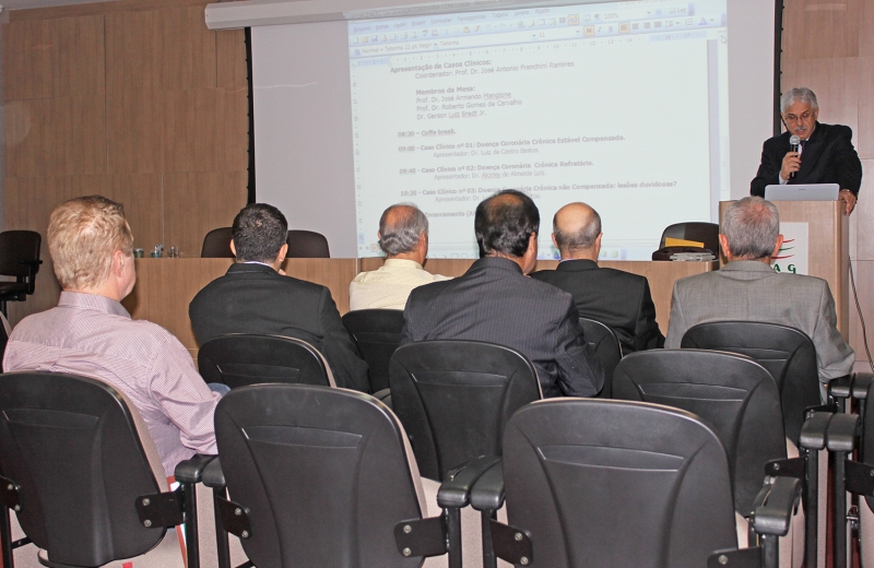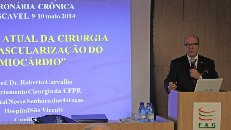 José Antônio Ramires, Roberto Gomes Carvalho e José Armando Mangione foram os responsáveis por ministrar as palestras que fizeram parte do evento "Atualização no Tratamento da Doença Coronária Crônica", que aconteceu no Auditório do Hospital São Lucas, na última sexta-feira (09) e sábado (10). Cardiologistas e acadêmicos de Medicina participaram da programação. Debate relevante para entender como o Brasil e o Paraná estão nesta especialidade. "Em cardiologia o Brasil sempre foi um dos países pioneiros, tanto que existem várias técnicas que aqui nós desenvolvemos", relatou José Antônio Ramires, médico do Instituto do Coração de São Paulo. "A cirurgia no Paraná, está em um estágio bastante próximo com os demais estados. Com bons resultados e mortalidade bastante baixa", disse Roberto Gomes Carvalho, médico e professor da Universidade Federal do Paraná. Os métodos no tratamento também avançam, um exemplo é a intervenção percutânea. "O método iniciou na Suíça, em 1977, e passou por inovações tecnológicas expressivas, o que aumentou a segurança do procedimento, além de sua eficácia", destaca José Armando Mangione. O segundo dia do evento foi reservado para a apresentação dos casos clínicos. "Três casos do cotidiano foram debatidos com o objetivo de apresentar aos profissionais o que podemos ofertar, tanto na área de medicação, quanto na hemodinâmica e cirurgia", enfatiza Luiz de Castro Bastos, cardiologista e responsável pela coordenação do evento.