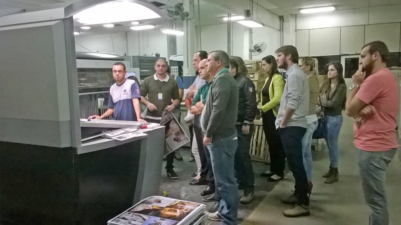 Os acadêmicos do 3º período de Marketing da Dom Bosco realizaram uma visita técnica a Gráfica Tuicial, como parte da disciplina de Planejamento em Marketing, ministrada pela professora Vandete Maria Sonego. O objetivo da ação foi conhecer o processo de produção da gráfica. A turma conheceu as máquinas onde são armazenadas todas as informações de imagens, caracteres, cores e tamanhos, a máquina de aplicação de verniz, dobradeira, grampeadeira, prensa, offset. Além disso, obtiveram informações sobre a matéria prima, os insumos (papéis, vernizes, tintas, etc.), e ainda a ações em responsabilidade social desenvolvidas pelos funcionários.