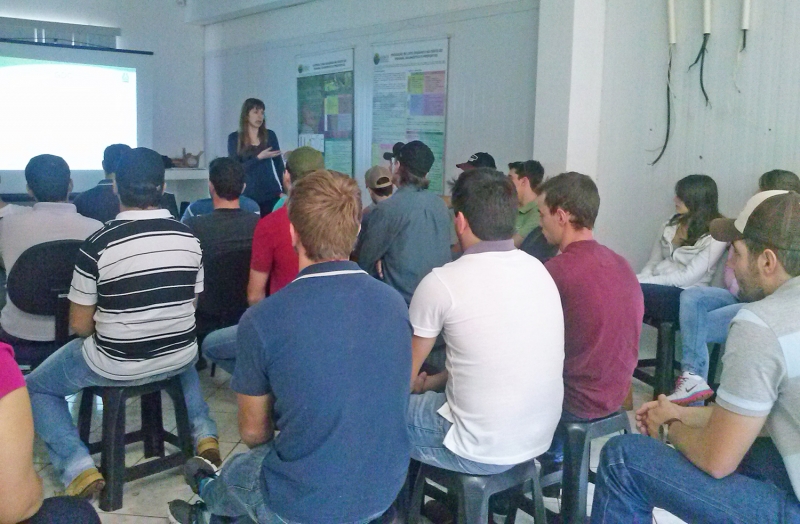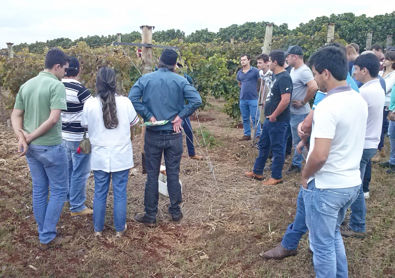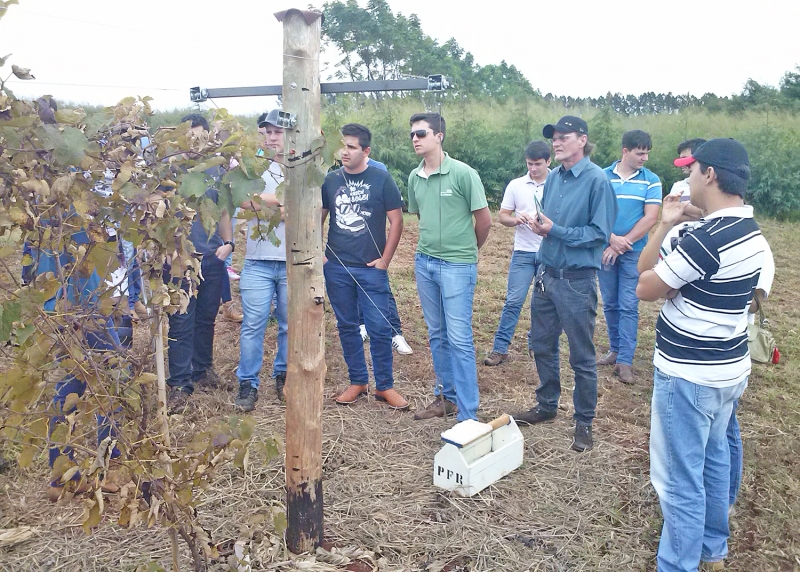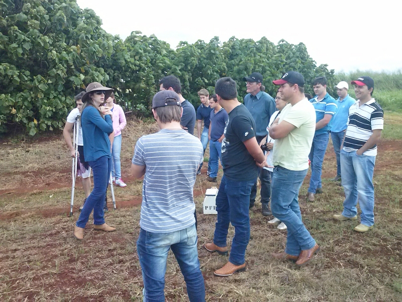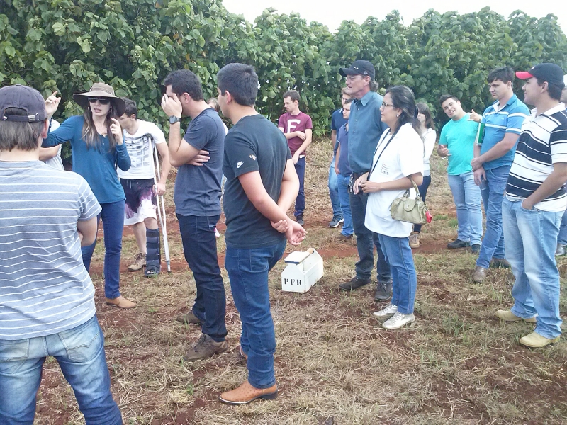 Os acadêmicos de Agronomia conheceram a Estação Experimental do IAPAR (Instituto Agronômico do Paraná), localizada em Santa Tereza do Oeste. Quem acompanhou os alunos na atividade foram os professores Eloir Asmann e Ellen Toews Doll Hojo. O objetivo da visita técnica foi a aproximação com as pesquisas desenvolvidas em fruticultura e a integração lavoura-pecuária. "Foram relatados os diferentes sistemas de condução, poda e enxertia em videiras para produção de suco, com a pesquisadora Alessandra Maria Detoni. E também os experimentos sobre sistemas integrados e semeadura de aveia IAPAR 61 em milho safrinha com pesquisador Elir de Oliveira", explicam os professores.