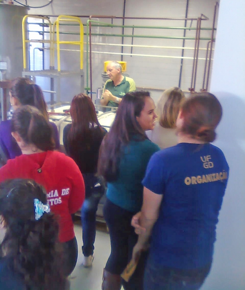 Acadêmicos da Universidade Federal Grande Dourados, do Mato Grasso do Sul, estiveram na Fazenda Escola da FAG para uma visita técnica. Na oportunidade, os 26 alunos do 9º período de Engenharia de Alimentos conheceram os laboratórios de biodiesel, de extração de óleos vegetais e de caracterização física/química de óleos vegetais. Os projetos são desenvolvidos em parceira com a Copel (Companhia Paranaense de Energia) e a Aneel (Agência Nacional de Energia Elétrica). Quem acompanhou os estudantes foi o professor do colegiado de Agronomia, Cornélio Primieri. A professora da UFGD Rosalinda Arévalo Pinedo ressaltou a importância dos projetos desenvolvidos pela FAG. "A Faculdade é referência em pesquisas sobre produção de biodiesel e extração e refino de óleos vegetais no Brasil", afirmou. "Ficamos impressionados com a estrutura do campus", complementou a professora. O diretor geral da FAG, professor Sérgio de Angelis, destacou que a instituição cumpre seu papel ao receber a comunidade externa. É importante partilhar esses espaços com as instituições públicas e privadas, já que nosso objetivo é de produzir conhecimento, mas também de difundir tecnologias, afirma.