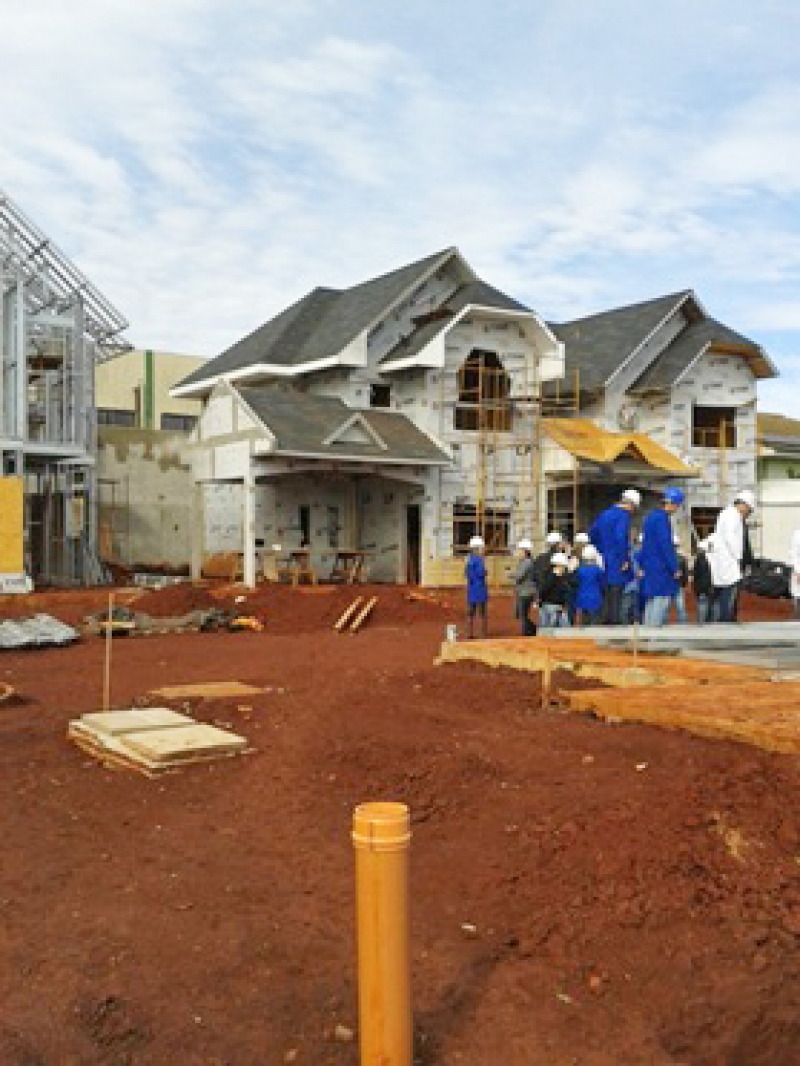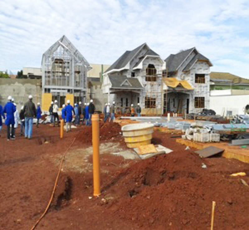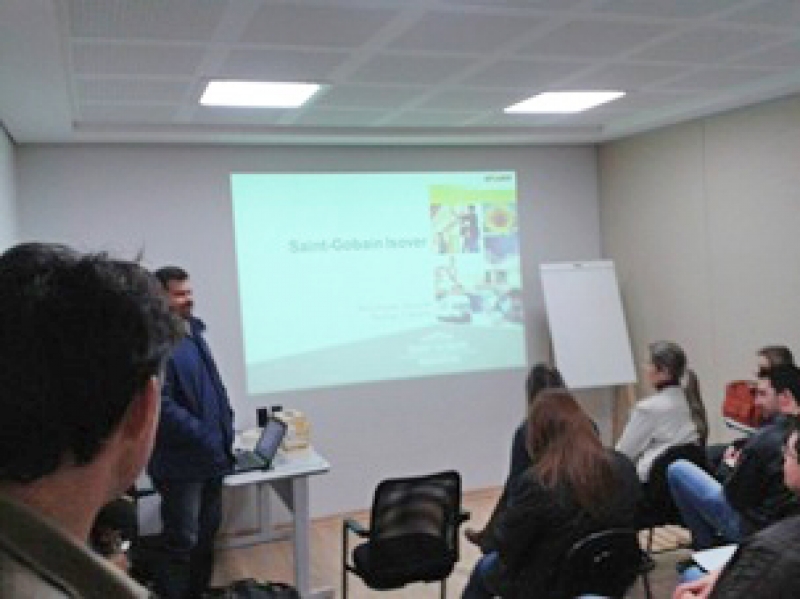Após participarem de uma palestra sobre materiais para isolamento, seguiram para uma visita em um canteiro de obras