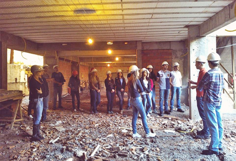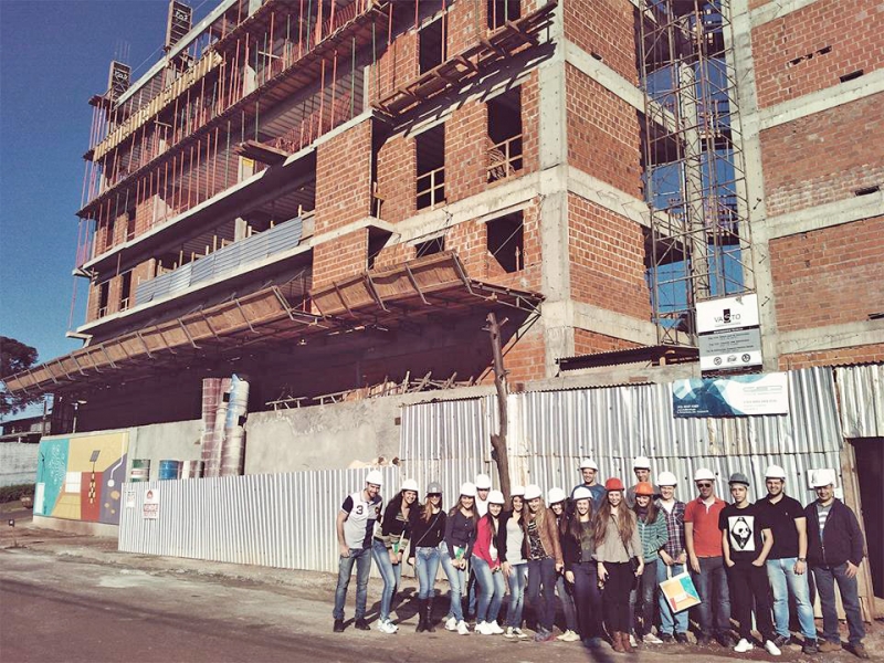 Três turmas de Arquitetura e Urbanismo participaram de uma visita técnica a obra do edifício Rosa dos Ventos, em Cascavel. A atividade foi supervisionada pelo professor Christian Kniphoff. Quem repassou as informações aos acadêmicos foi o arquiteto responsável, Caio Smolarek Dias. A atividade teve como objetivo a interação com a obra e suas diversas etapas. Além de proporcionar aos estudantes o conhecimento dos diferentes sistemas construtivos, já que o prédio está sendo construído com tecnologias alternativas. "Os acadêmicos tiveram a oportunidade de participar efetivamente da experiência profissional, colaborando na realização de trabalhos executados sob a responsabilidade de profissional arquiteto-urbanista ou engenheiro civil, legalmente habilitado", conta o professor.