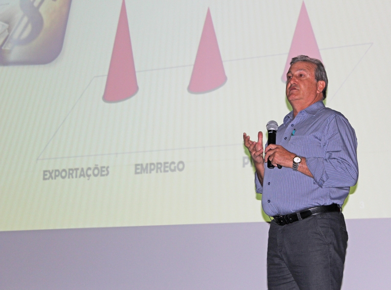Dilvo Grolli apresentou a importância do agronegócio para o Brasil, por meio de números que expressaram a produção de grãos