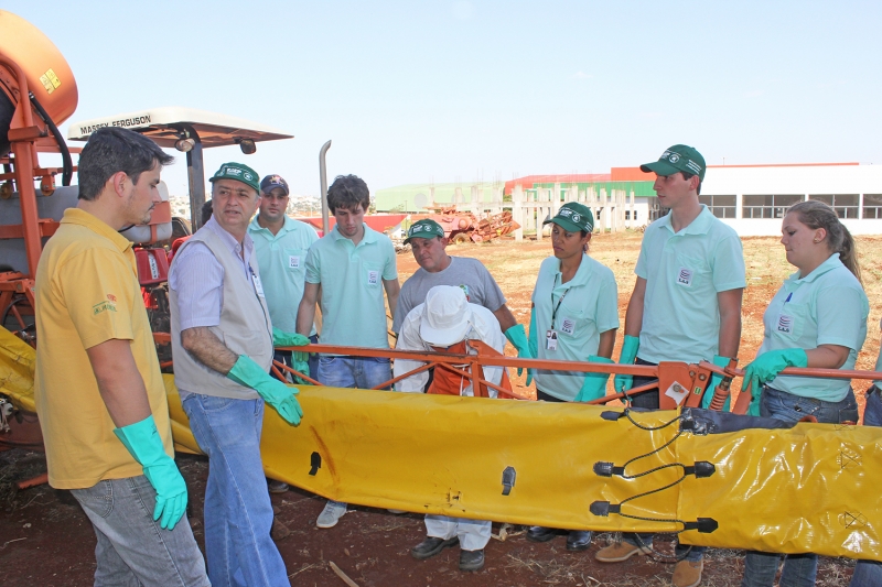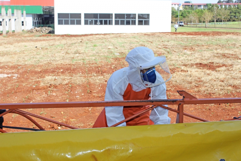 Na tarde desta quarta-feira (10), funcionários e alunos do curso de Agronomia concluíram um treinamento para a aplicação consciente e segura de agrotóxicos. Guiados pelo professor Vanderlei de Oliveira, todos os módulos do treinamento foram baseados no material fornecido pelo Serviço Nacional de Aprendizagem Rural (SENAR - PR) e durante as aulas, foi possível aprender sobre o uso e manutenção do pulverizador, aplicação de agrotóxicos e suas tecnologias. Os alunos também puderam ter mais contato com detalhes sobre o manuseio dos defensivos agrícolas, aprendendo sobre os cuidados necessários desde a compra dos produtos até a aplicação e quais são os riscos ambientais que podem ser desencadeados caso haja alguma falha na aplicação. Para os alunos, a oportunidade foi de aprendizado e troca de experiências, enquanto para o professor Vanderlei, o treinamento trouxe mais uma forma de mostrar que os agrotóxicos, se usados da maneira correta, podem trazer mais vantagens do que desvantagens.
