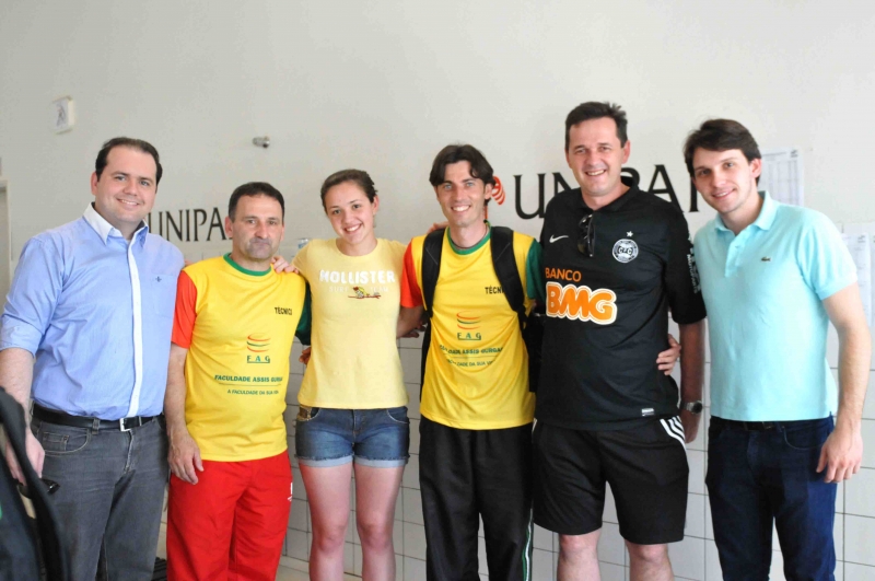 Acompanhados pelos professores Neudi Zenatti e Lissandro Dorst, os atletas da FAG que embarcaram para Cianorte na semana passada, conquistaram medalhas e fizeram história nos Jogos Universitários. As conquistas são variadas e quase todas as modalidades terão mais uma boa lembrança para engrandecer a coleção de títulos conquistados pelos acadêmicos da Faculdade. Mas, dessa vez, além das medalhas, os recordes é que ganham destaque. O atleta Matheus Formighieri Silveira fez o menor tempo na prova de 1.500 nado livre, categoria masculina e, além disso, ganhou outros títulos em nome da instituição. HANDEBOL O time da Handebol Feminino levou a prata. Com o placar grudado, minuto a minuto, a final feminina foi digna de ser considerada a mais emocionante da competição. Após dois empates, de 13 a 13, nos dois tempos normais do jogo (26 a 26), a decisão foi para a prorrogação, que teve 10 minutos. O placar mais uma vez ficou colado. Mas, no último minuto a partida foi decidida pelas meninas da UNIPAR. NOSSOS VENCEDORES Cerca de 50 atletas foram até Cianorte para representar a Instituição. Conheça os nossos vencedores: - Jaqueline de Souza Corso - 1º lugar na categoria arremesso de peso (4,0 kg) feminino, 1º lugar no lançamento de disco (1,0 kg) feminino; - Wellington Davi Wiesenhwter - 1º lugar no salto em distância masculino, 7º lugar nos metros rasos masculino; - Bruno H. de Oliveira Mota - 4º lugar no salto em distância; - Iloyzuel João da Silva Moreira - 4º lugar no xadrez rápido masculino; - Patrick Humberto Piva - 3º lugar na prova de 50 peito masculino, 4º lugar na prova de 200m Medley masculino, 3º lugar nos 100m peito masculino; - Matheus Formighieri Silveira - 1º lugar na prova de 1500m nado livre masculino (com quebra de recorde), 5º lugar nos 200m costas masculino, 1º lugar nos 400m medley masculino, 4º lugar nos 800m livre masculino, - Equipes: 1) 3º lugar geral no tênis masculino com os atletas Diogo Mayer, Alexandre de Moraes e Willim Brohoski; 2) 7º lugar geral na categoria xadrez masculino; 3) 3º lugar geral no revezamento 4x100m livre masculino com os atletas Patrick Humberto Piva, Augusto Gerhart Folmann, Liniker Mauro Barbosa e Matheus Formighieri Silveira; 4) 3º lugar geral no revezamento 4x100m medley masculino com os atletas Matheus Formighieri Silveira, Patrick Humberto Piva, Augusto Gerhart Folmann e Liniker Mauro Barbosa; 5) 3º lugar geral no revezamento 4x200m livre masculino com os atletas Patrick Humberto Piva, Augusto Gerhart Folmann, Liniker Mauro Barbosa e Matheus Formighieri Silveira. Informações e fotos: www.jogosuniversitarios.pr.gov.br