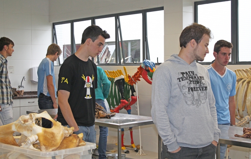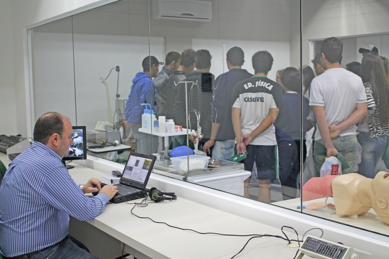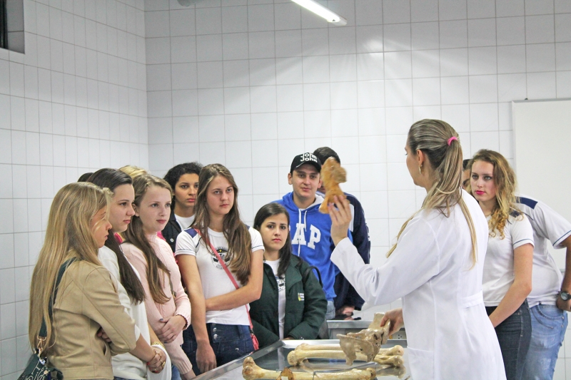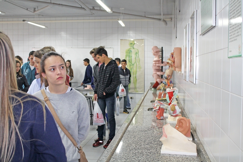 Guiados por acadêmicos e funcionários, as turmas das diversas escolas de Cascavel e região conheceram os Laboratórios que a faculdade possui. No bloco 01, os adolescentes conheceram a estrutura dos Laboratórios de Anatomia I, de Tecnologia Farmacêutica, de Semiologia II e de Zoologia.