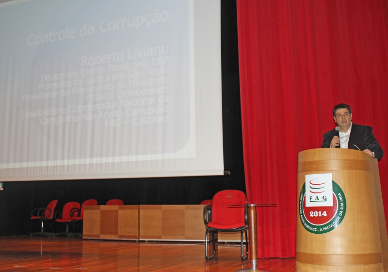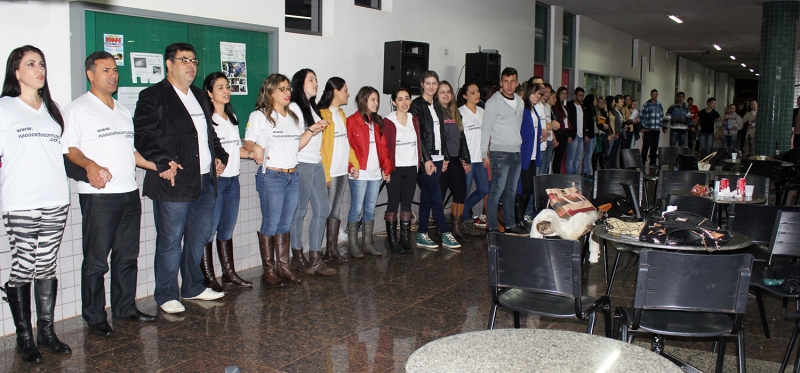 Foi ao som do Hino Nacional que os estudantes de Direito da FAG encerraram o Ato Público "Não Aceito Corrupção" que aconteceu hoje (26), pela manhã, na área de convivência do Bloco 01. A campanha é coordenada pelo promotor de Justiça no Ministério Público do Estado de São Paulo, Roberto Livianu, que também ministrou uma palestra aos acadêmicos na noite de ontem (25), com o tema "Controle da Corrupção no Brasil".