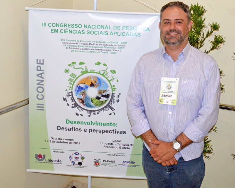O professor Eduardo Madureira apresentou, na última semana, dois artigos científicos no 3º Congresso Nacional de Pesquisa em Ciências Sociais Aplicadas CONAPE, que aconteceu em Francisco Beltrão. O evento foi organizado pela Universidade Estadual do Oeste do Paraná. Os trabalhos intitulados "A Importância da Cadeia Produtiva da Soja no Crescimento Econômico do Oeste do Paranaense: uma Análise entre 1985 e 2012" e "O Escambo na Contemporaneidade: o Álbum da Copa do Mundo como Simulador do Comércio Primitivo", fizeram parte da área de Ciências Econômicas. Na oportunidade, o docente também recebeu dois exemplares do livro "Agroecologia: uma abordagem crítica", que ficarão disponíveis para consulta na Biblioteca da FAG.