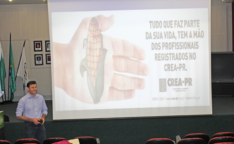 Geraldo Canci, gerente regional do CREA-PR, foi o palestrante convidado. Evento reuniu estudantes do 10º período
