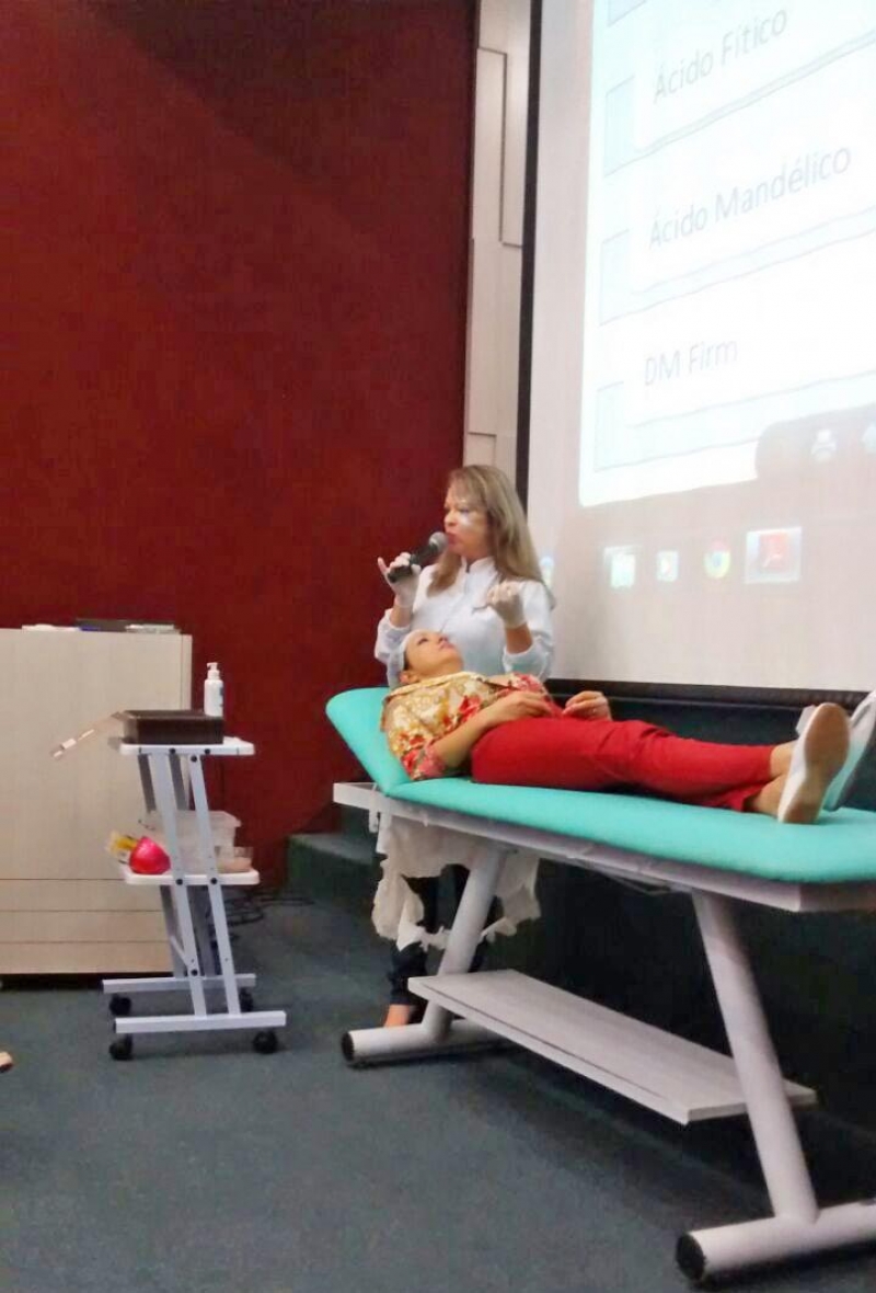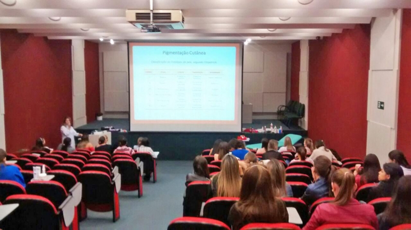 Os acadêmicos do curso de Estética e Cosmética da Faculdade Dom Bosco participaram, no último sábado (22), no Auditório do Bloco 01, de uma palestra com o tema "Rejuvenescimento Facial". A atividade foi desenvolvida em parceria com a empresa Cosmobeauty, de Curitiba. Eliziane Andrade apresentou os produtos da marca e falou das novidades na área. Quem acompanhou a ação foi a professora Patrícia Dalssasso. A atividade faz parte dos Seminários Temáticos da graduação.