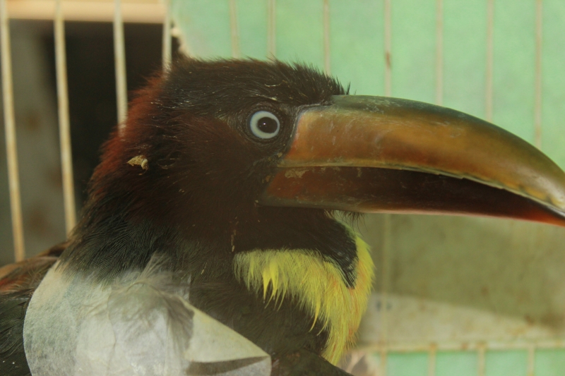 Na segunda-feira (26) o Viveiro da FAG recebeu um filhote de Araçari, que foi encontrado em uma residência de Cascavel. O pássaro, que está com a asa quebrada, foi resgatado pela Polícia Florestal trazido para o Viveiro. Ontem (27), pela manhã, o veterinário Renato, que trabalha no Hospital Veterinário da FAG, examinou o animal e alegou que não é possível a realização de cirurgia, uma vez que pode afetar os sacos aéreos. O Araçari permanece com a asa imobilizada e continua recebendo papinha de filhote na seringa.