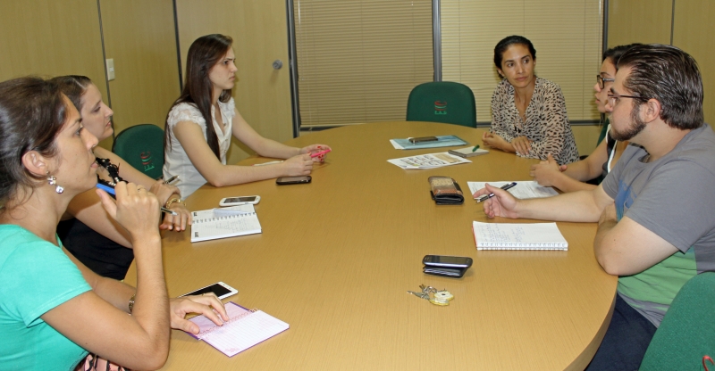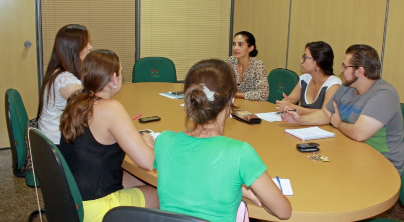 A coordenadora Cláudia Barbosa reuniu os acadêmicos para organizar atividades