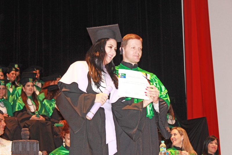 A Coordenadora do Curso de Enfermagem, Prof.ª Adriana Romão entregou a láurea acadêmica a Eliza Maria Pauli que obteve a maior média de notas no Curso. E o Coordenador do Curso de Letras, Prof. Paulo Cesar Fachin entregou a láurea acadêmica a Adriana da Silva Boeira que obteve a maior média de notas no Curso.