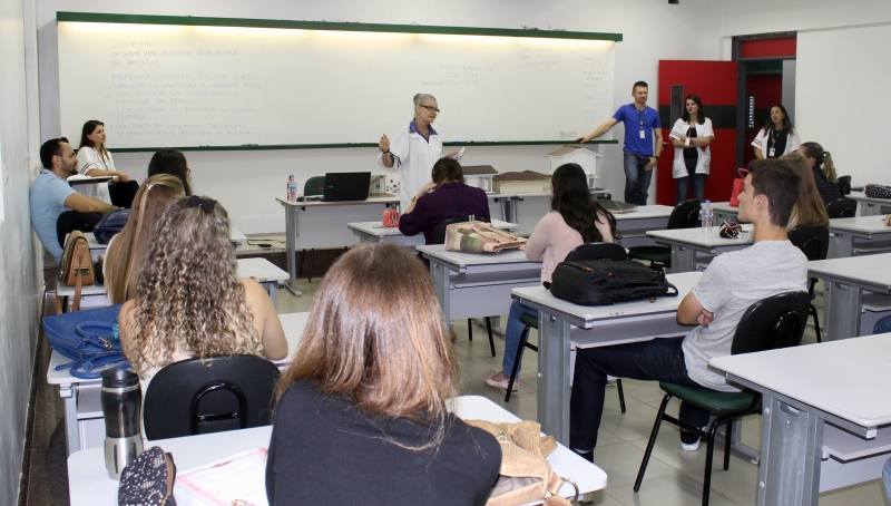 Os 32 calouros de Arquitetura e Urbanismo (Integral) da FAG tiveram na tarde de hoje (19) seu primeiro contato com o curso. Na ocasião, a coordenadora, professora Solange Smolarek Dias, expôs sobre a matriz curricular, o calendário acadêmico e apresentou os professores.