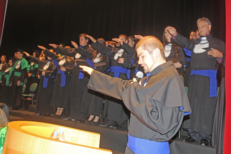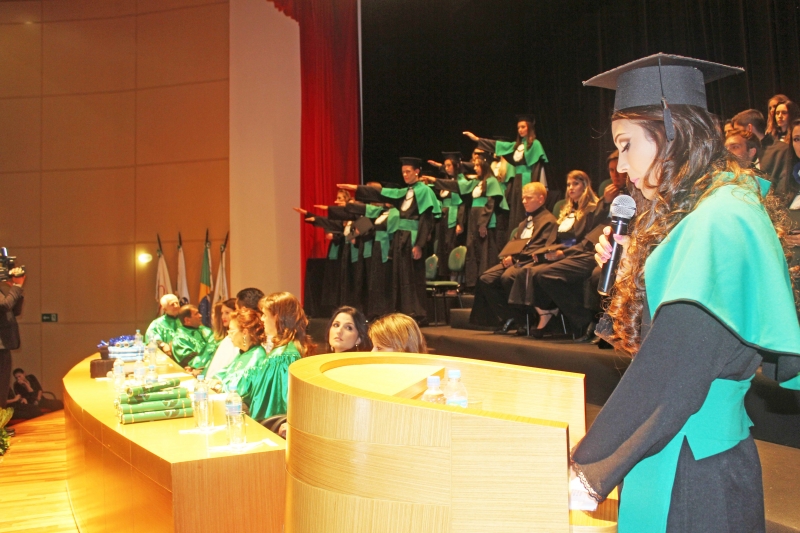 Em um dos momentos mais importantes da cerimônia, o formando de Administração Eduardo Munaretto Olbermann e a formanda de Fonoaudiologia Bruna da Costa Beppler proferiram o juramento. Um compromisso declarado e assumido por todos, de exercer a profissão com responsabilidade e ética, aplicando os conhecimentos adquiridos na Faculdade.