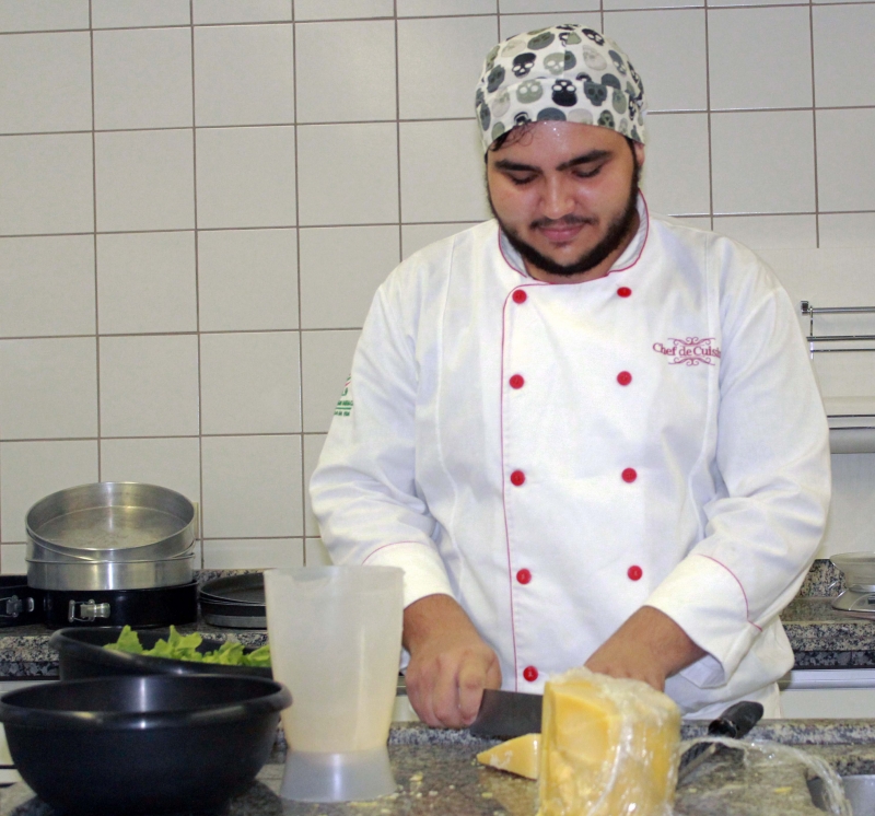 Douglas Aguiar Sesso, acadêmico da FAG, faz o curso com o objetivo de abrir um restaurante futuramente. "Meu sonho é esse. Sempre gostei de cozinhar vendo minha mãe e avós, e acabei me identificando com a área da gastronomia e, dessa forma, sinto-me realizado. O módulo foi muito legal, porque eu consegui entender a teoria e aplicar a prática", conta Douglas.