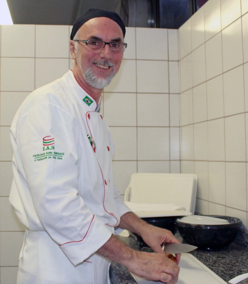 Chef Alexandre Bressanelli orientou o preparo de pães e pizzas