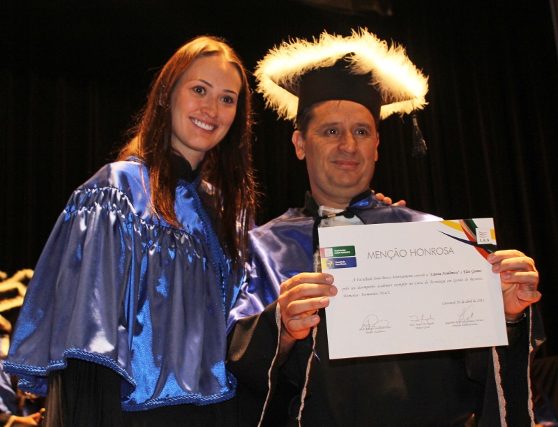 A primeira solenidade de outorga de grau aconteceu às 14h dos cursos de Tecnologia em Gestão de Recursos Humanos e Tecnologia em Sistemas para Internet e foi presididda pelo Diretor Geral da FAG, professor Sérgio de Angelis. Sandra dos Santos Marques da Paixão, formada do curso de Tecnologia em Gestão de Recursos Humanos foi a oradora e o formado Eloi Gomes recebeu a láurea acadêmica por obter a maior média de notas do curso. Do curso de Tecnologia em Sistemas para Internet, Mikael Lincoln Moura Muniz representou a turma como orador e os formados Fagner Menegasso e Robert Roger de Matos receberam a láurea acadêmica.