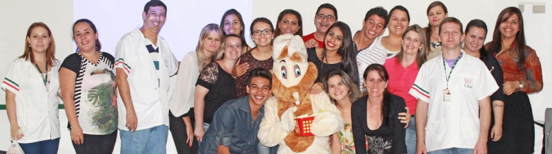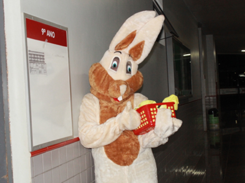 Os cursos de Pedagogia e Letras dos períodos matutino e noturno receberam a visita do Coelhinho da Páscoa. Essa foi a maneira da coordenação desejar "Feliz Páscoa" aos alunos e professores de um jeito alegre e encantador. Na oportunidade estavam presentes a Assessora da Coordenação Andressa Ferreira e o coordenador do curso, professor Paulo Fachin. Segundo Paulo, a páscoa é uma data a ser comemorada: "Valorizamos as datas comemorativas e buscamos ser referência para os futuros professores nos trabalhos a serem desenvolvidos em sala de aula", explica. Complementa ainda agradecendo aos colaboradores da ação: "A atividade só foi possível pela disponibilidade da direção e coordenação, representadas pelos professores Givanildo Nardi, Jussara Chagas de Lima e Ana Elizabeth Kothe, por permitirem utilizar o material do Colégio FAG", observa.