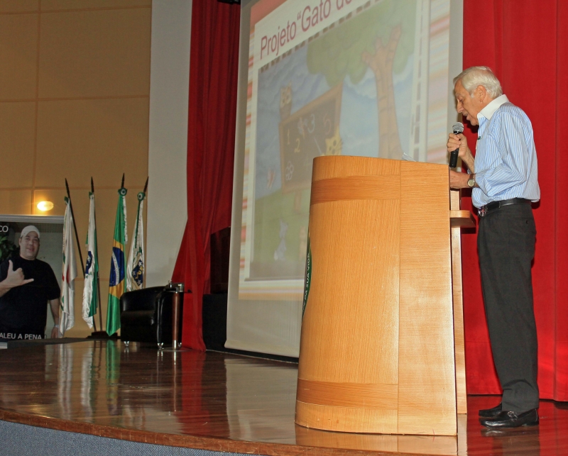 Após a fala dos promotores do evento, a professora Angela Traldi Cecato, coordenadora pedagógica do Projeto Gato de Botas, fez a apresentação das atividades desenvolvidas: "o projeto busca dar apoio à inclusão nas escolas da rede municipal e estadual de São José do Rio Preto. As crianças são encaminhadas para o projeto, uma vez que a escola identifica algum déficit de aprendizagem, logo existe uma equipe multidisciplinar, dentre eles, neurologistas, psicólogos, psicopedagogos que definem estratégias de intervenção, a fim de encontrar um caminho para que a criança possa se desenvolver e acompanhar os estudos", explica Angela.