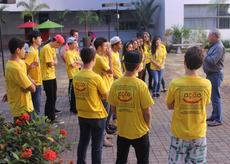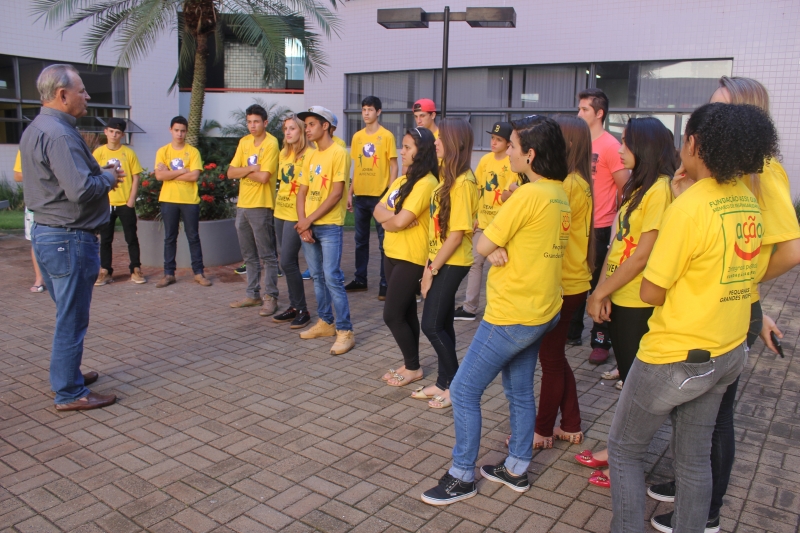 Na tarde de hoje (16), os jovens aprendizes foram surpreendidos pela visita do presidente da FAG, Sr. Assis Gurgacz. No Bloco 04, durante o horário do lanche, eles foram abordados para uma conversa informal. Assis falou um pouco sobre sua trajetória pessoal e profissional e orientou os jovens a seguirem sempre pelo rumo certo. "Não se envolvam com drogas, dediquem-se aos estudos e tenham objetivos de vida, o resultado certamente será o que vocês almejam", aconselhou.