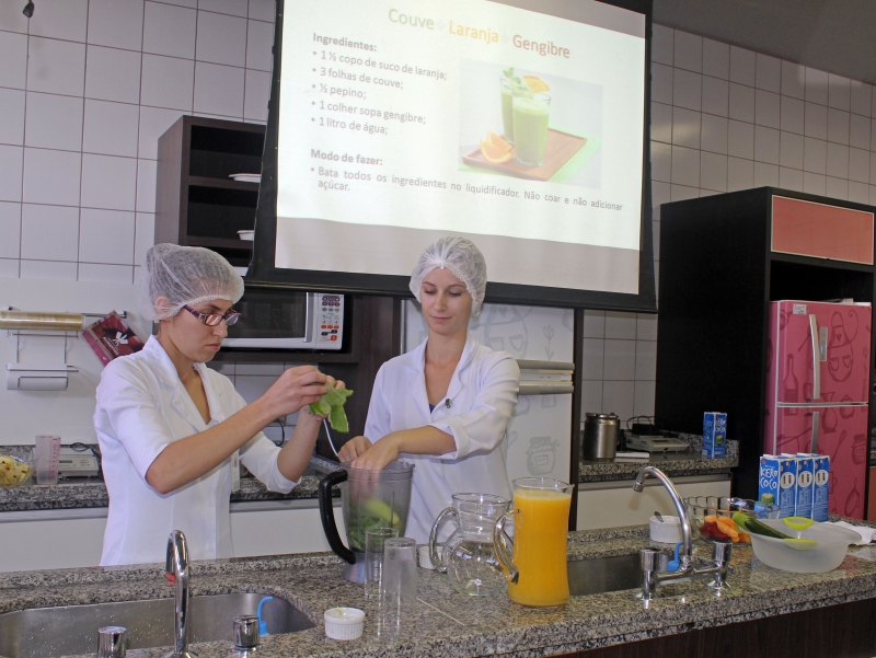 Os alunos Ronan Michael Mallmann, Vanessa Giraldi, Thais Calcagno Machado, Bianca Piccoli Colla e Veridiana Carraro programaram a atividade com os pacientes que estão em preparo para a cirurgia bariátrica. O intuito foi orientá-los sobre o valor nutricional dos ingredientes, relacionar com as patologias apresentadas, além de oferecer sugestões de sucos que poderão ser ingeridos no pré e pós-operatório. "Outro objetivo foi desmistificar o uso de suco 'DETOX' no pré-operatório como uma receita mágica, priorizando e incentivando ao consumo de frutas, verduras e legumes in natura", explica a professora Nanci.