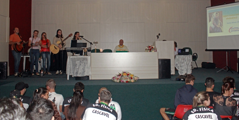Na noite de ontem (28), a FAG recebeu a Pastoral Universitária, responsável por organizar a Celebração Eucarística pelo bom êxito do ano letivo. Calouros da faculdade participaram da missa de acolhimento, que foi celebrada pelo arcebispo de Cascavel Dom Mauro Aparecido dos Santos.