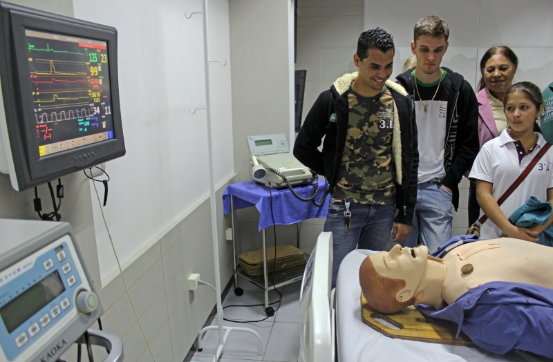 Durante todo o dia, os cursos de graduação oferecidos pela FAG e Dom Bosco se organizaram em seus laboratórios, montados com ambientes específicos para as profissões abordadas, inclusive com equipamentos de trabalho.