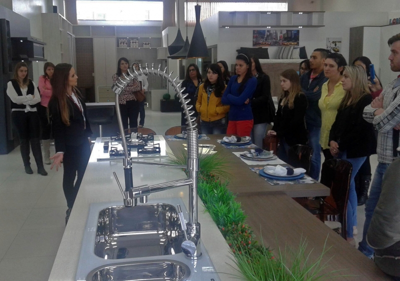 Na ocasião, os acadêmicos foram recebidos com um café da manhã e tiveram uma vasta explicação do funcionamento da loja e da fábrica, bem como a explanação da parte de projeto de mobiliário.