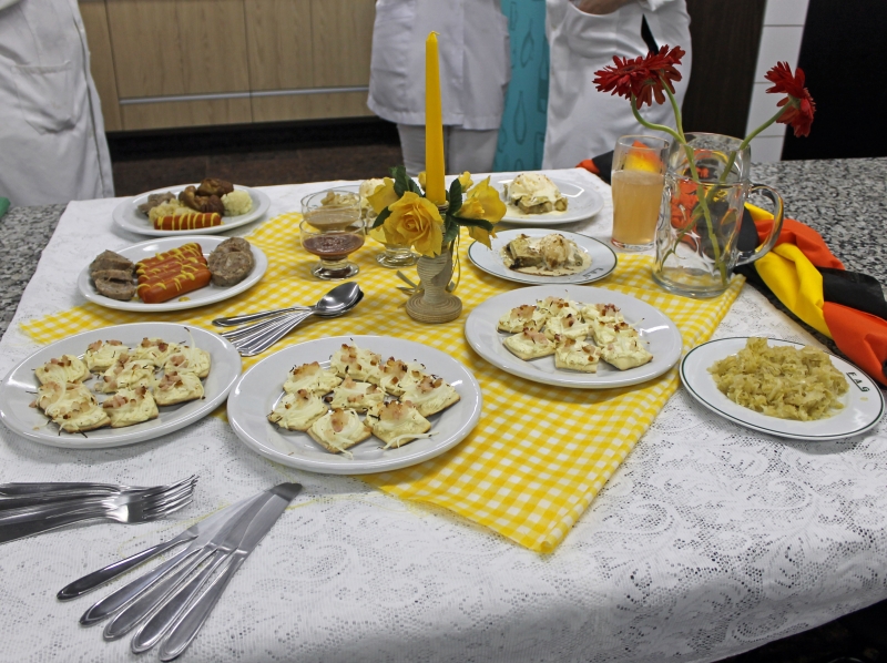 Os acadêmicos do 3º período desenvolveram cardápios representando Espanha, Itália, Japão, México, Alemanha e França