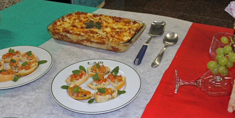Bruna Moreto, que faz parte da equipe da Itália, esteve presente nas apresentações do grupo anterior. "Foi interessante observar como eles prepararam os cardápios, quais alimentos utilizaram e como fizeram uso da criatividade", comenta. Acsa Gomes, integrante da mesma equipe, explica que o trabalho iniciou há mais de um mês quando já começaram a pesquisar sobre o respectivo país e entender a composição da culinária em questão. "Primeiro pesquisamos de modo geral, sobre costumes e cultura e, depois, nos dedicamos ao cardápio específico para apresentar à turma", explica. O grupo da Itália desenvolveu três pratos: entrada, prato principal e sobremesa, respectivamente Bruschetta, Lasagna e Palha Italiana.