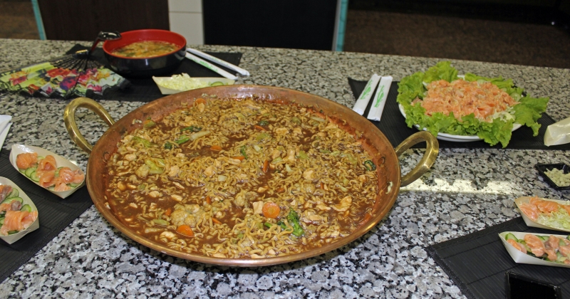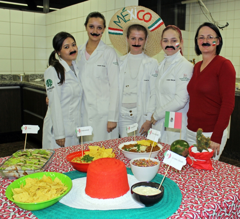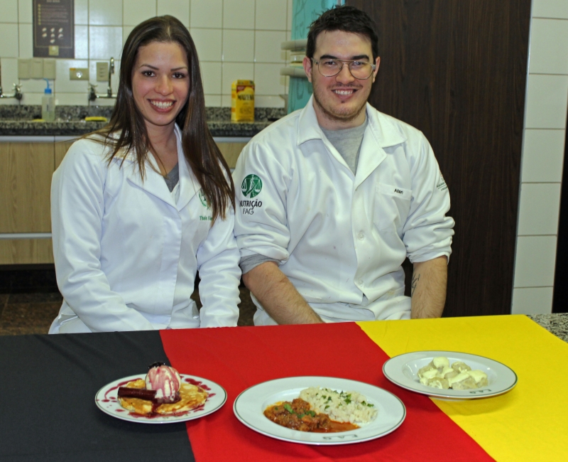 Na terça-feira (16), o curso de Nutrição da FAG promoveu a segunda etapa do Seminário sobre Técnica Dietética Internacional. Os acadêmicos do 3º período desenvolveram cardápios representando Espanha, Itália, Japão, México, Alemanha e França. Foram seis países distribuídos em seis grupos, que usaram a criatividade para representar a cultura do respectivo país.